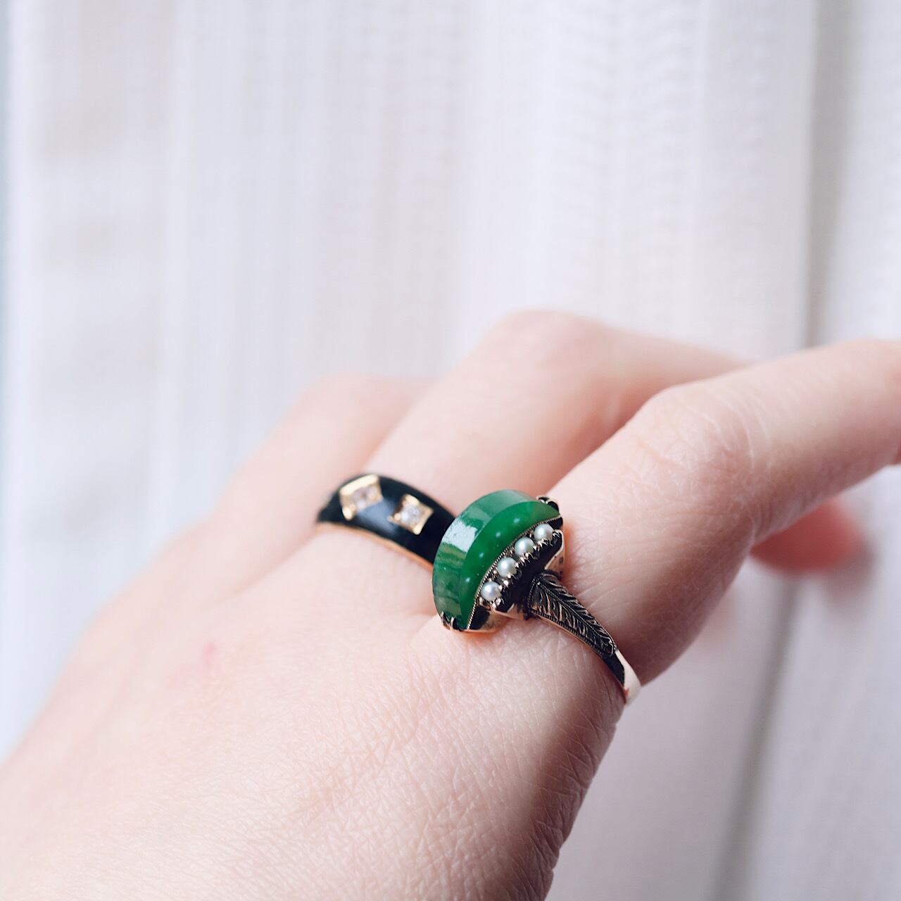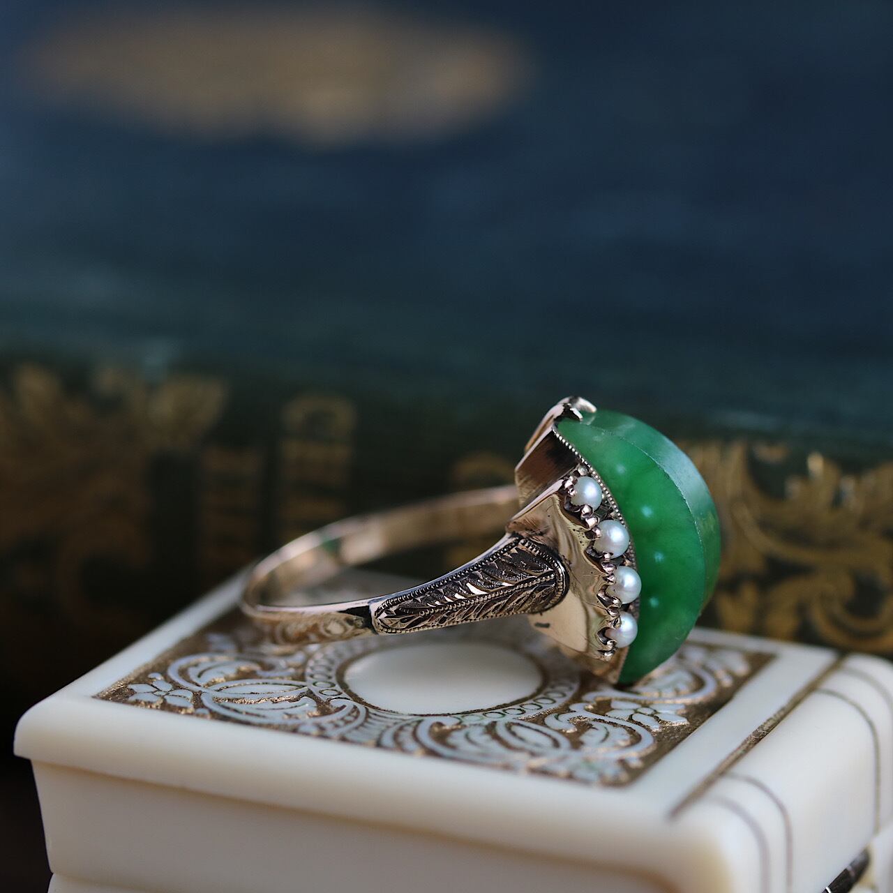 K14 翡翠と芥子パールの日本製アールデコリング。