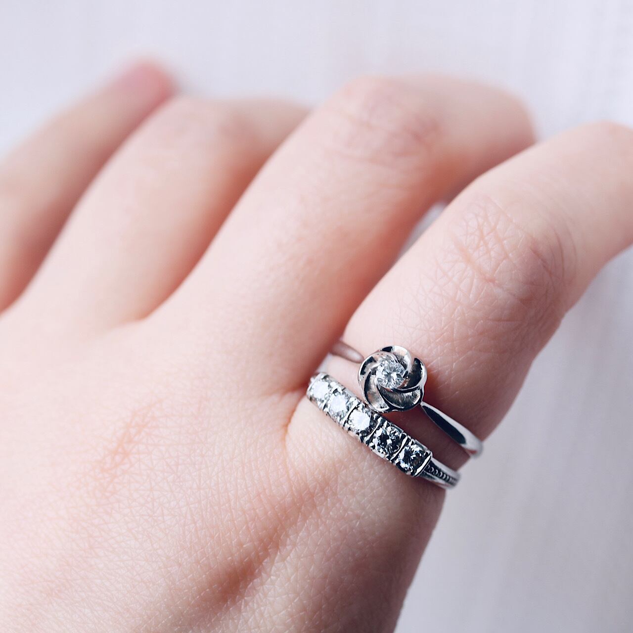 ダイヤモンドだけでも華やかな印象になりますが、サイドから見ても楽しめるように工夫がなされていて、さり気ないお洒落なデザインとダイヤモンドの組み合わせに胸が高鳴ります。
