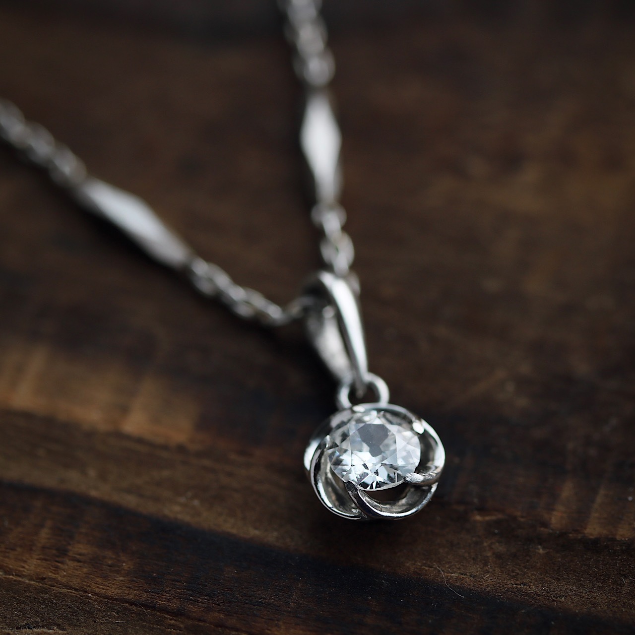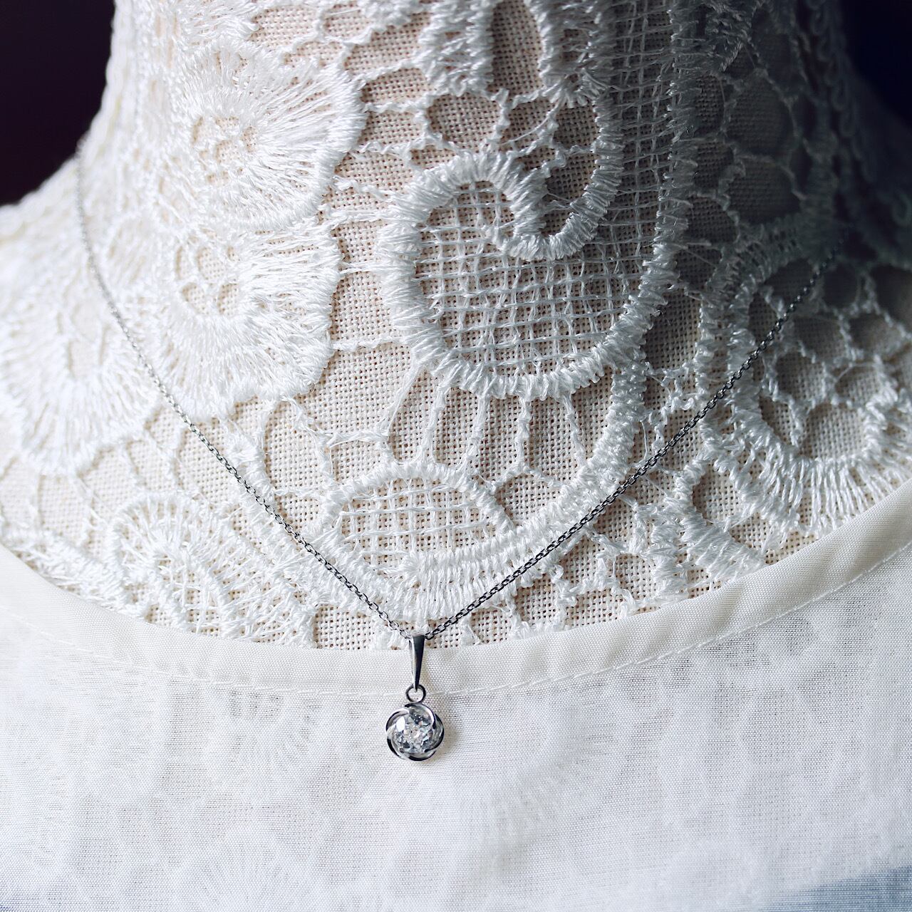 プラチナ製 捻り梅の大粒オールドヨーロピアンカットダイヤモンドのペンダントトップ。