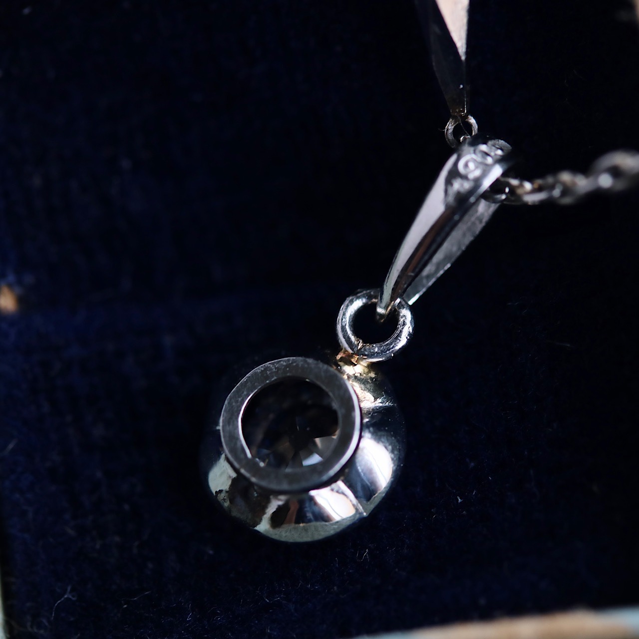 地金の傷は光の加減で僅かに認識出来る程度、ダイヤモンドに傷に関しては肉眼では分からない程度の小さなものです。