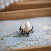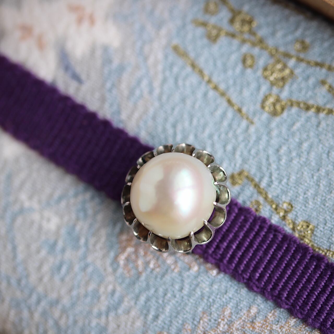 大粒白蝶真珠の菊爪ヴィンテージ帯留。