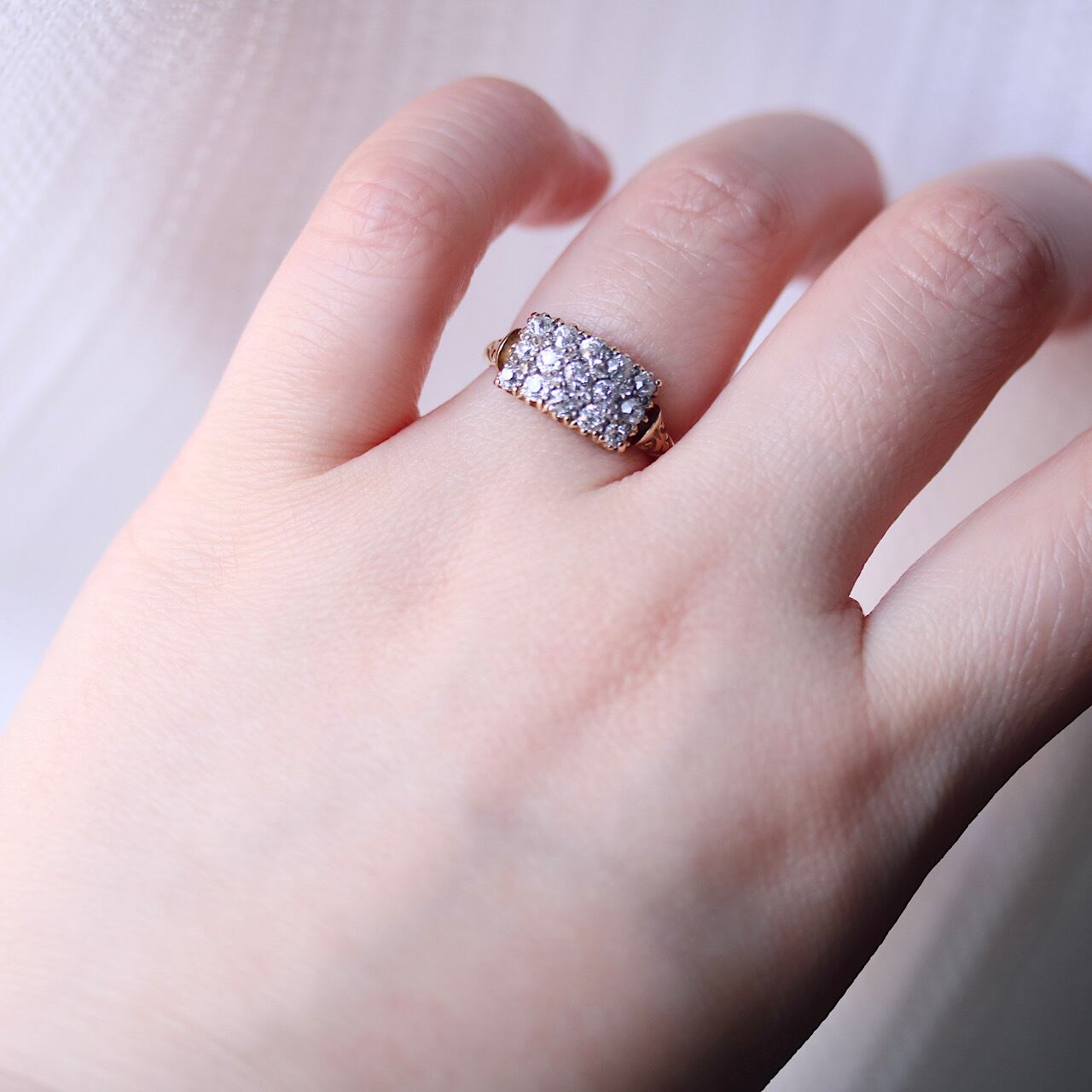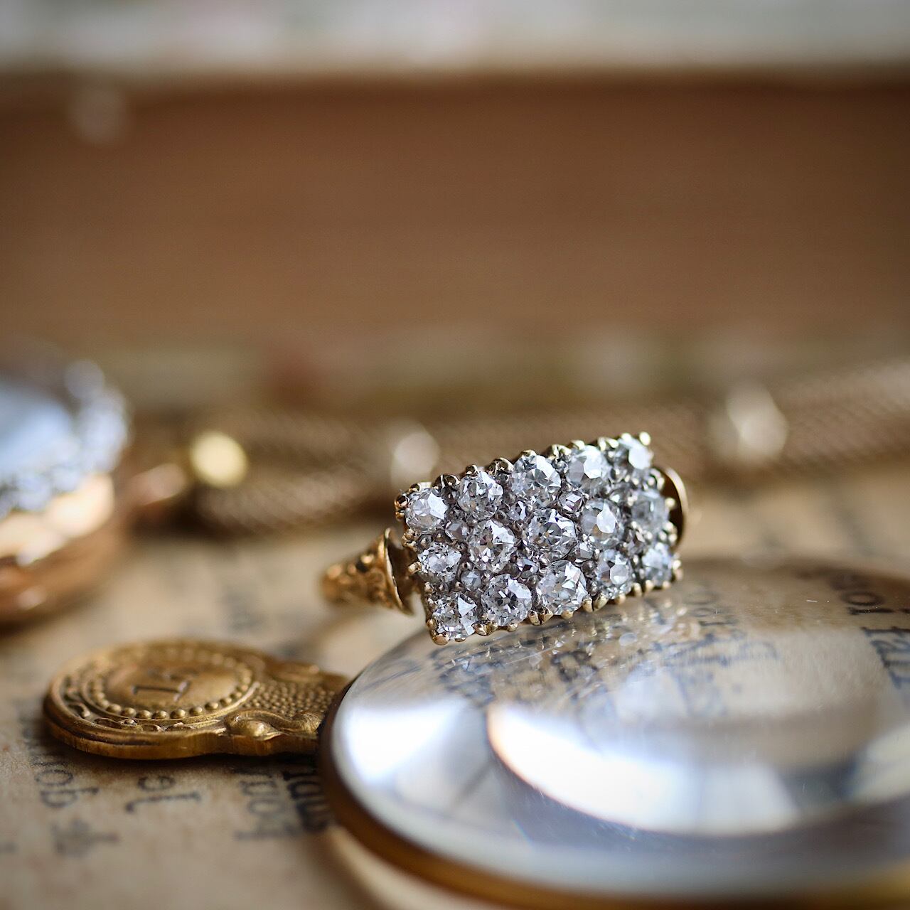 英国製 18CT オールドヨーロピアンカットダイヤモンド パヴェリング ヴィクトリアン アンティーク
