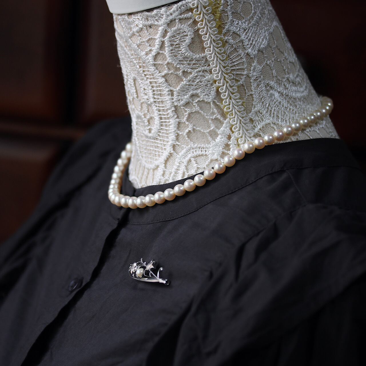 時々他のヴィンテージ品でも見られるのですが、パールネックレスなどに使われる真珠のようです。