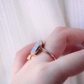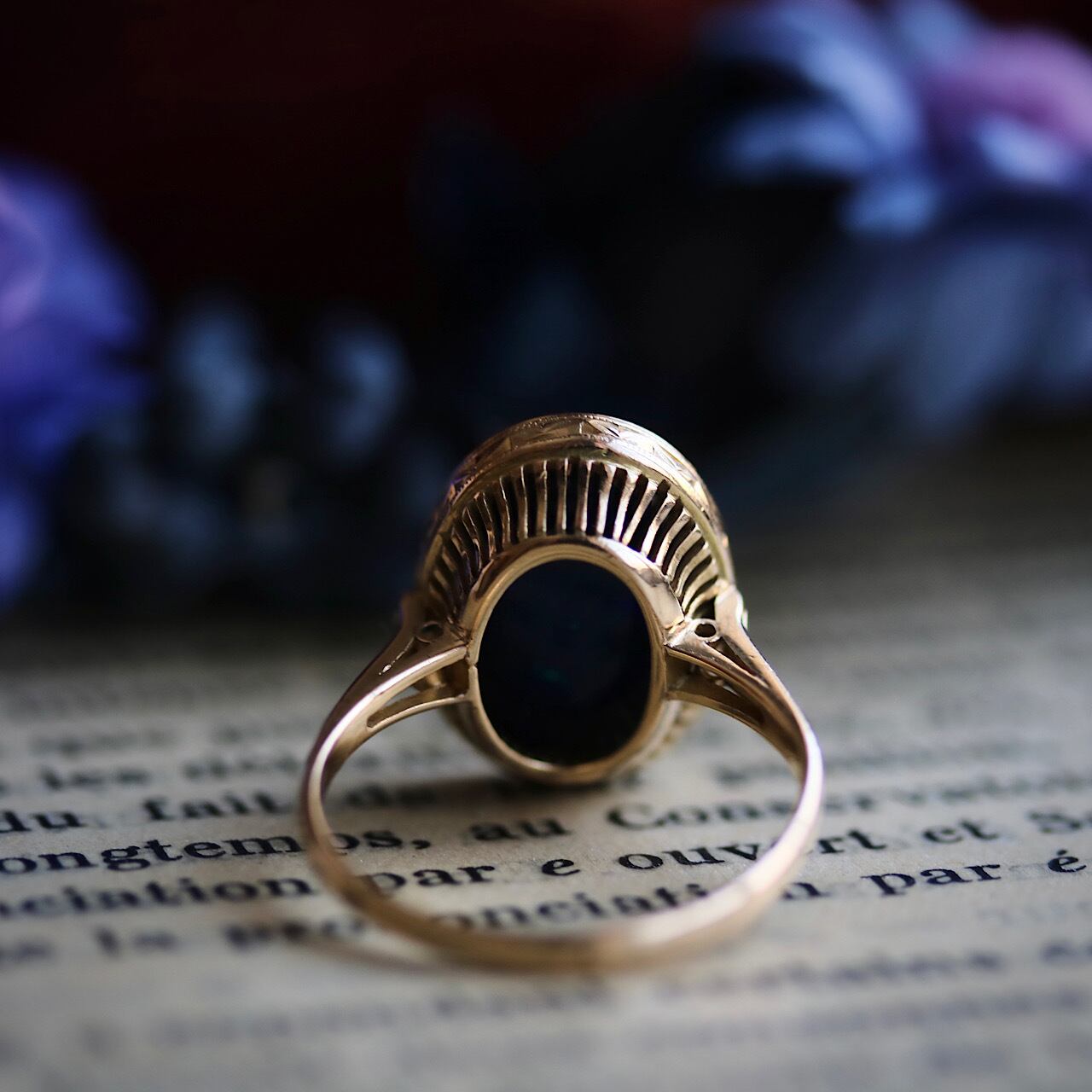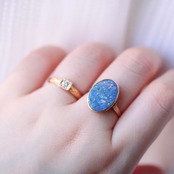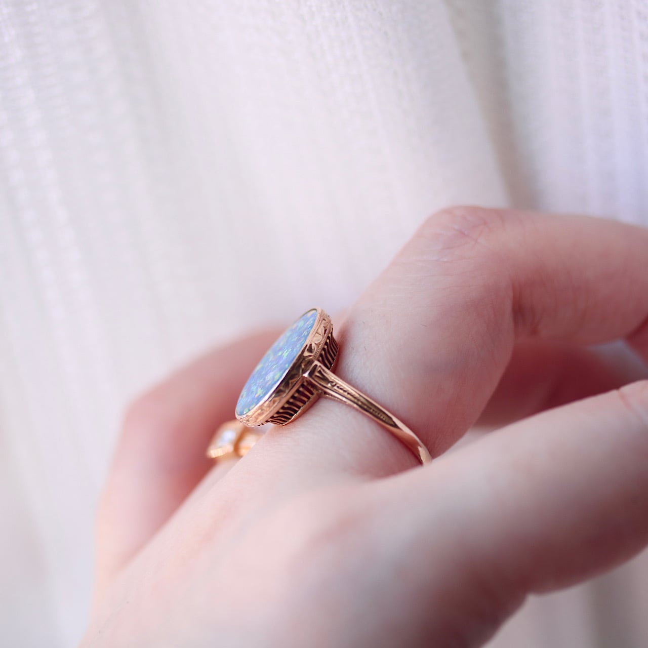 ブルーにカラフルな遊色効果の煌めきが楽しめる、大粒オパールのヴィンテージリング。