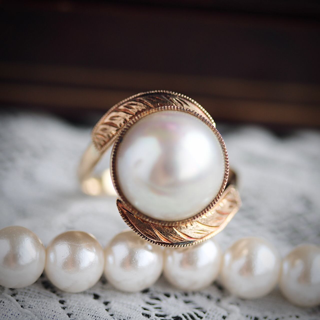 K14 マベパール 和製 トゥールビヨン 彫金 ヴィンテージリング