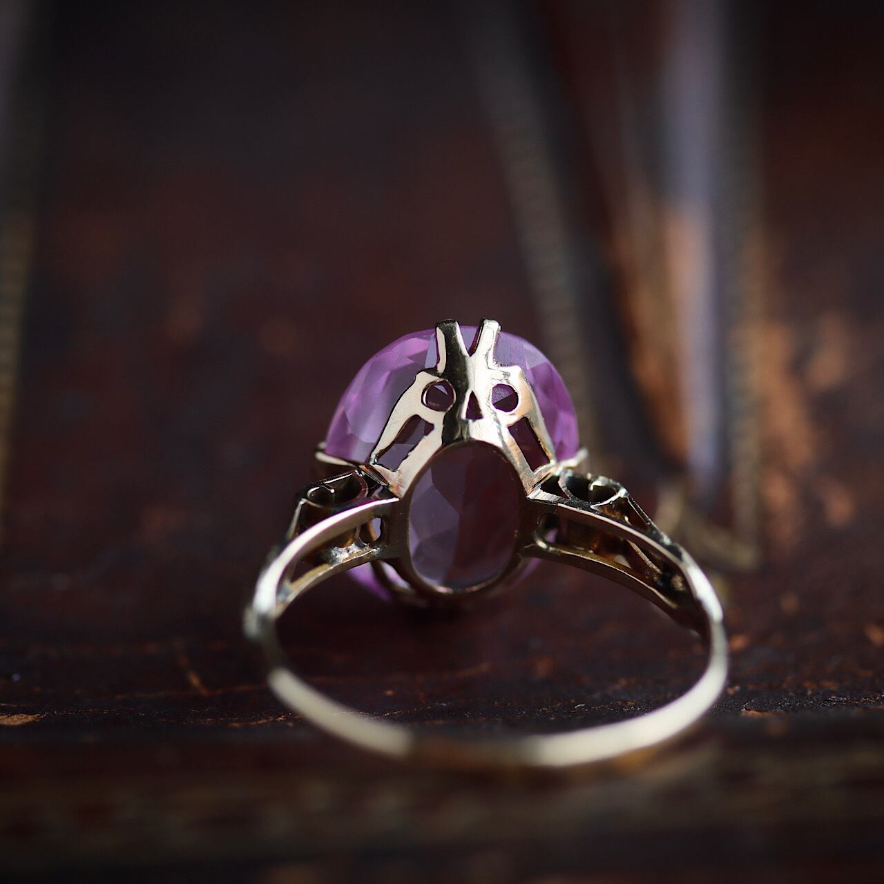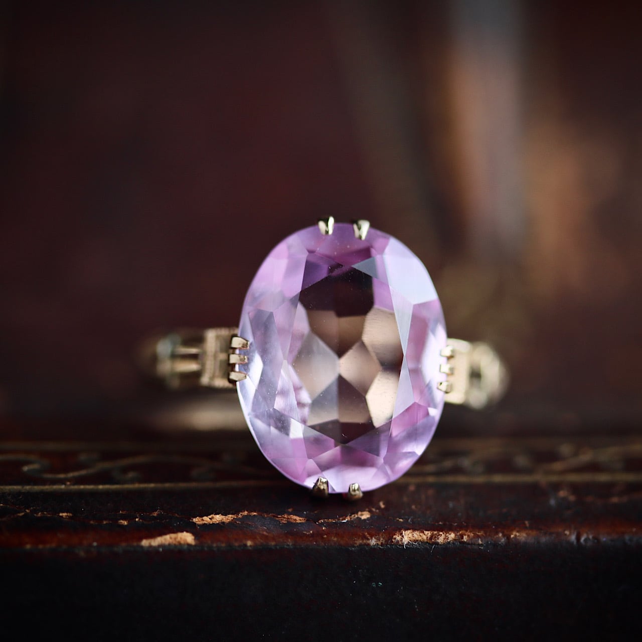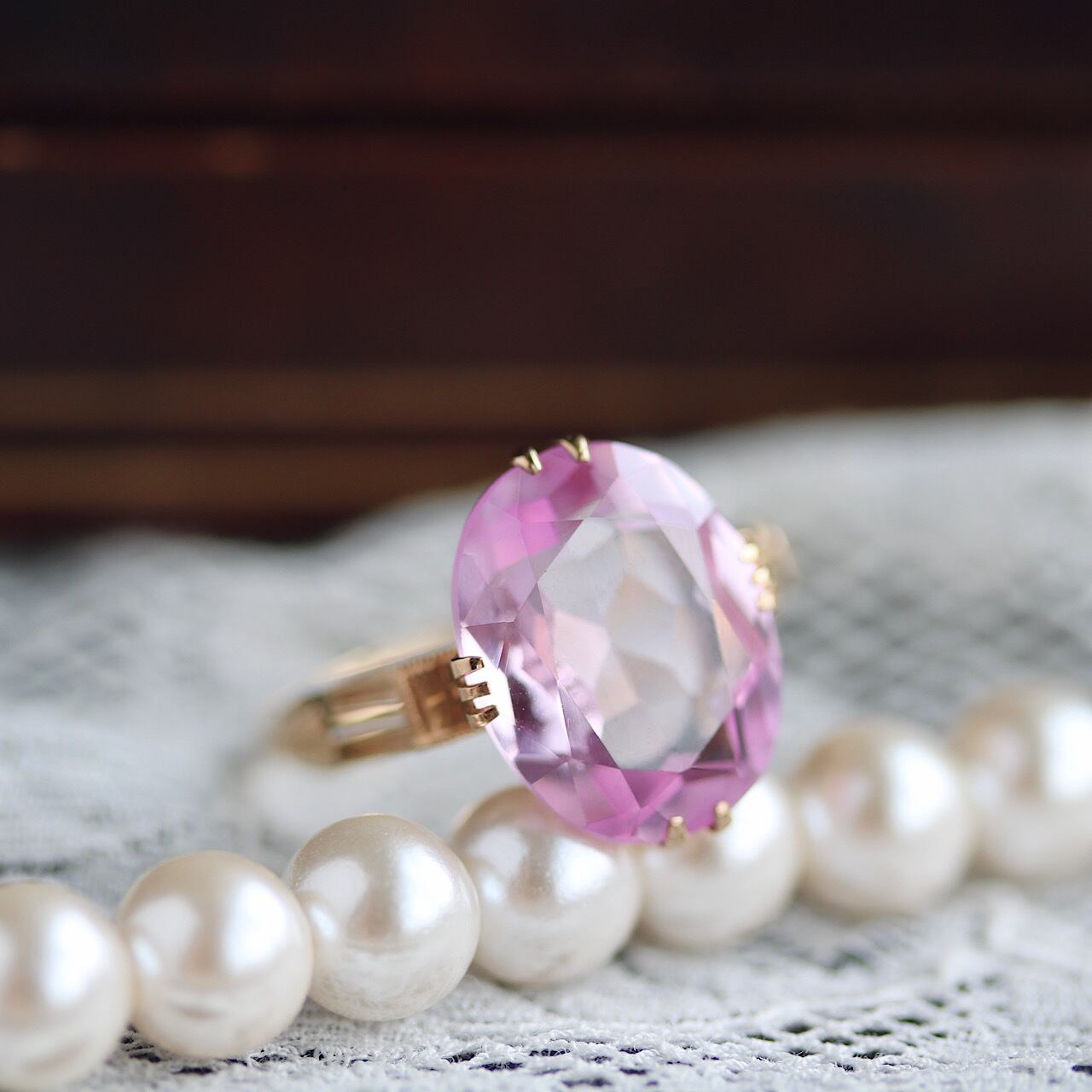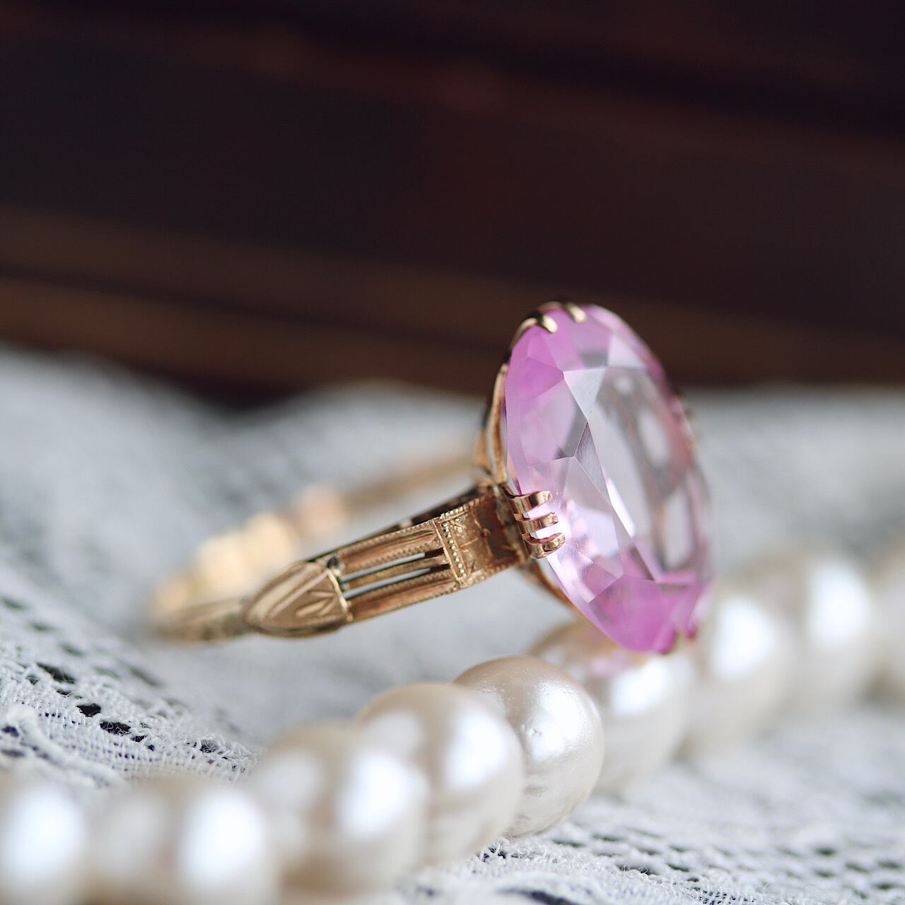K18 淡い桜色 合成ピンクサファイア 和彫 ヴィンテージリング
