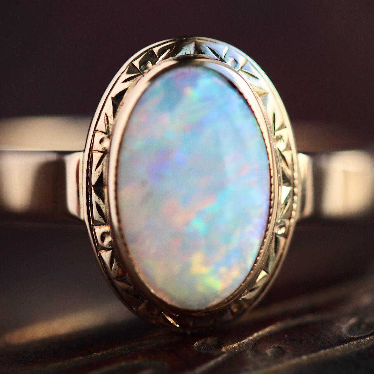 オパールの周りには縁取るように美しい彫金が施されており、額縁のような装飾がヴィンテージ感たっぷり。