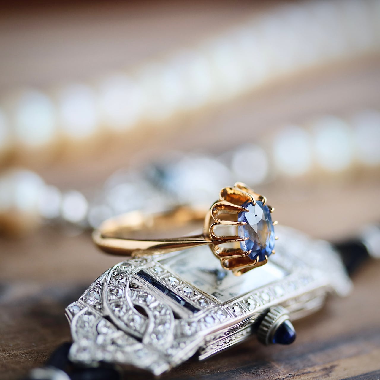 天然サファイアが使われている事も珍しいので当時特注で作られたお品の可能性があります。
