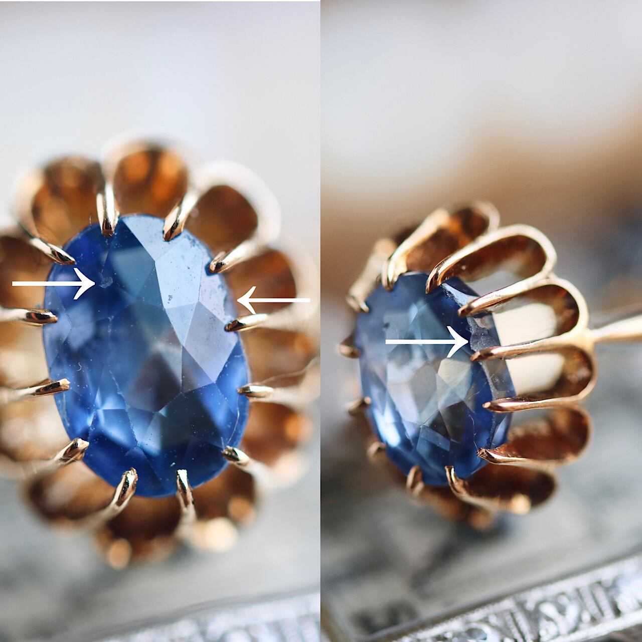 サファイアにやや傷や細かな角擦れがあるものの、肉眼では殆ど気にならない程度のもの(写真あり)