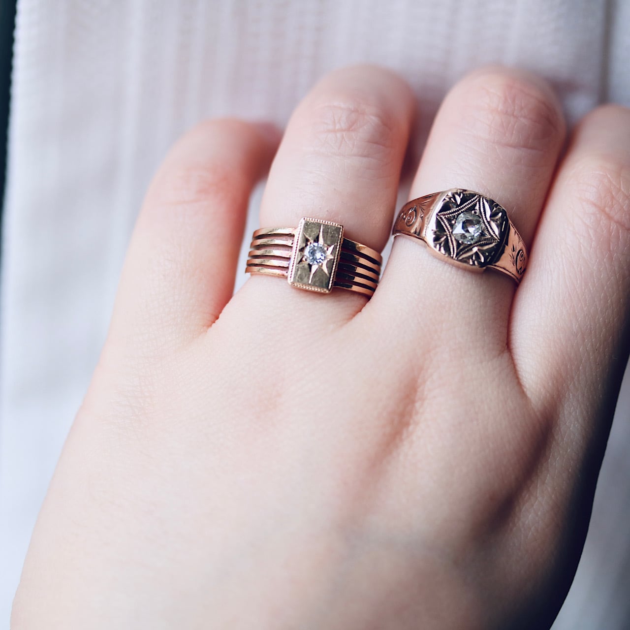 上品さと個性を併せ持ったヴィンテージの印台リング。