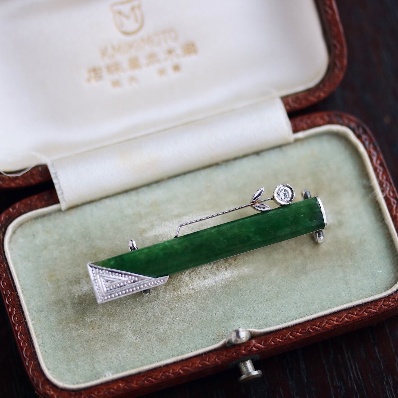 翡翠とダイヤモンドがあしらわれた和モダンなアンティーク帯留。