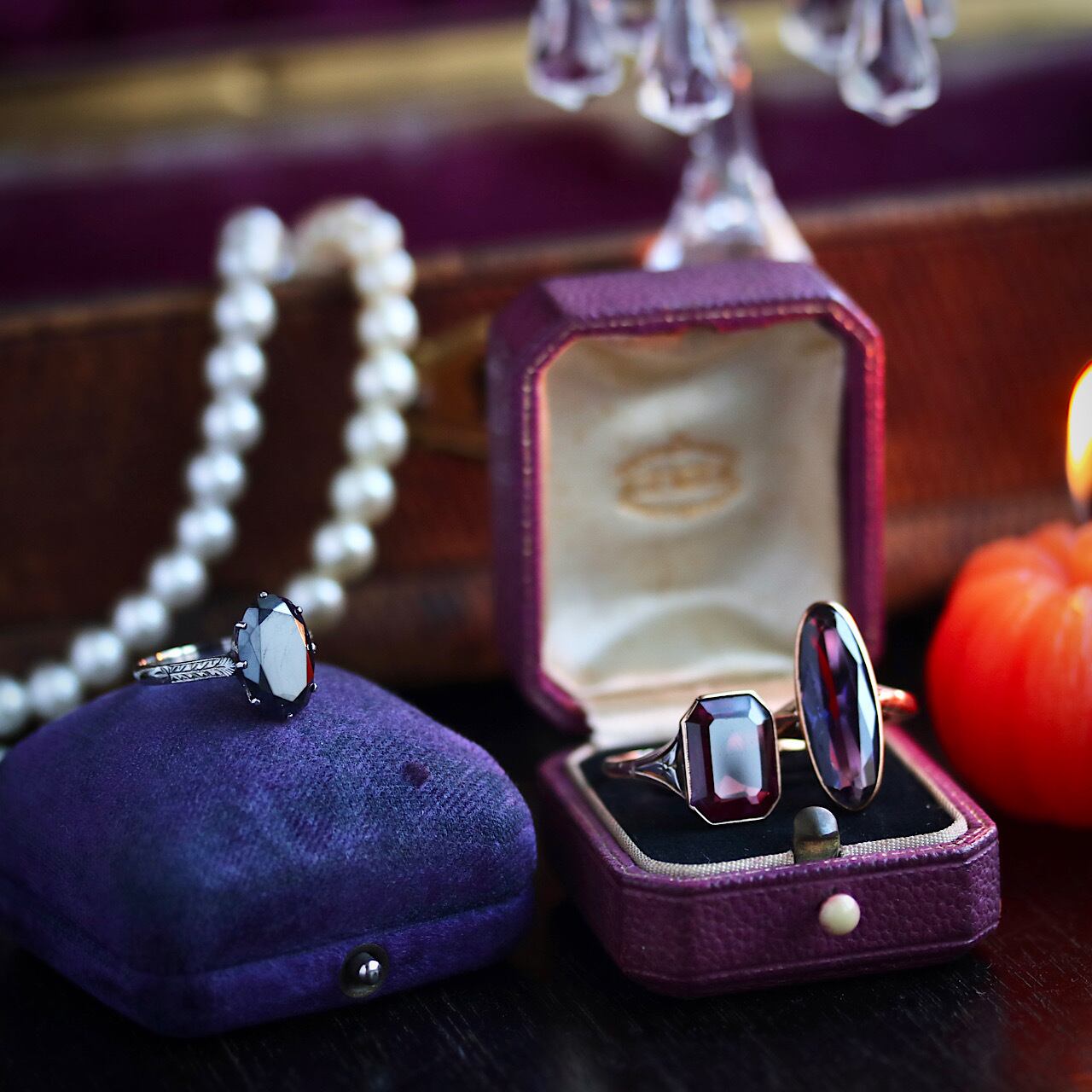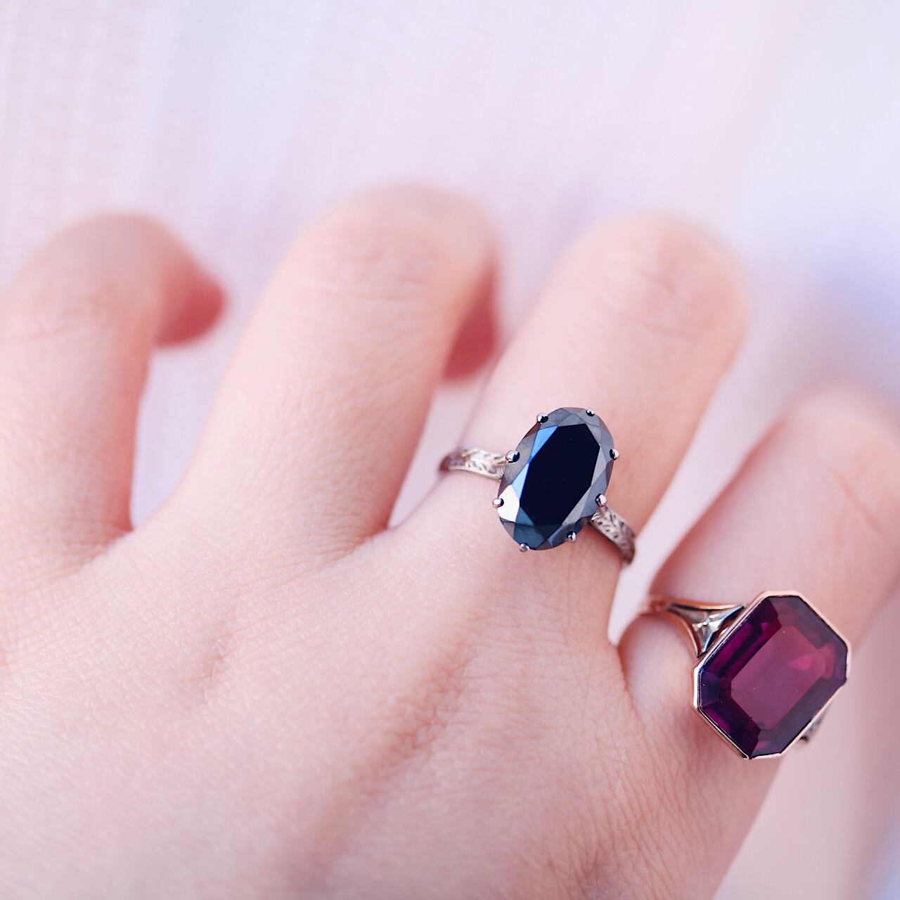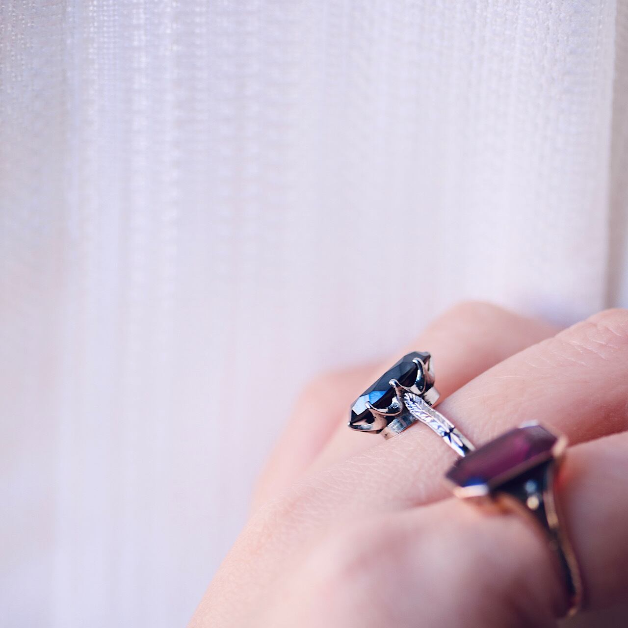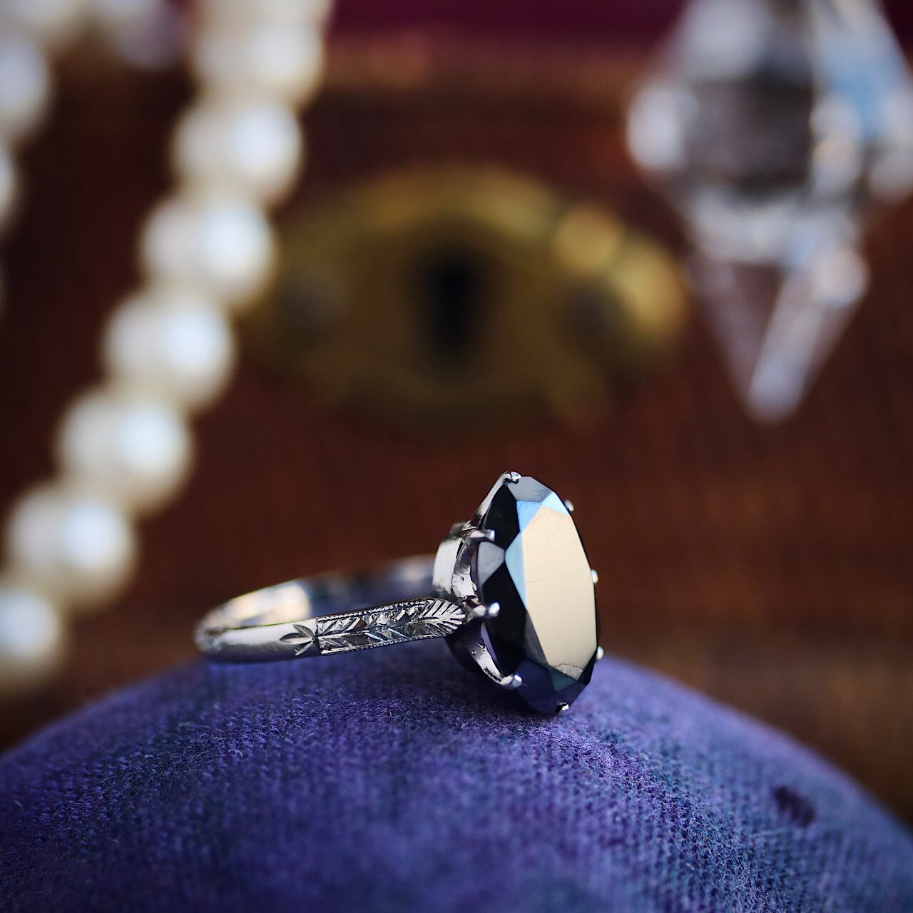 黒いメタリックのような独特な輝きのヴィンテージリングです。