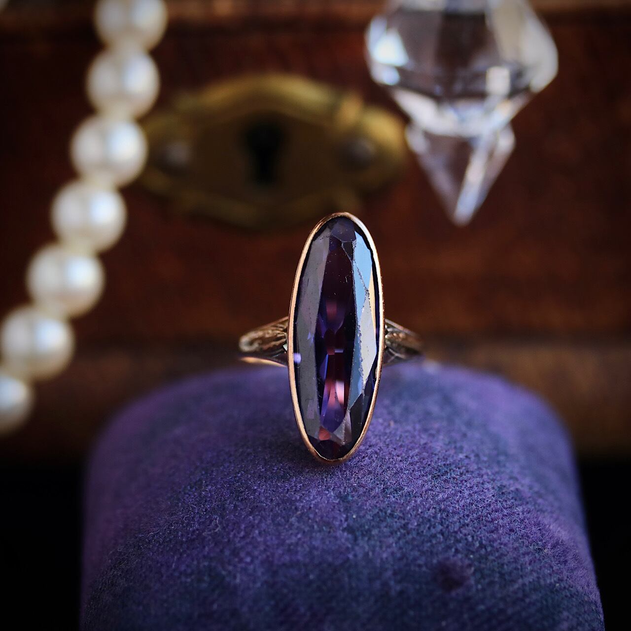 K18 合成ヴァイオレットサファイアの上品な美しさが際立つヴィンテージリング。