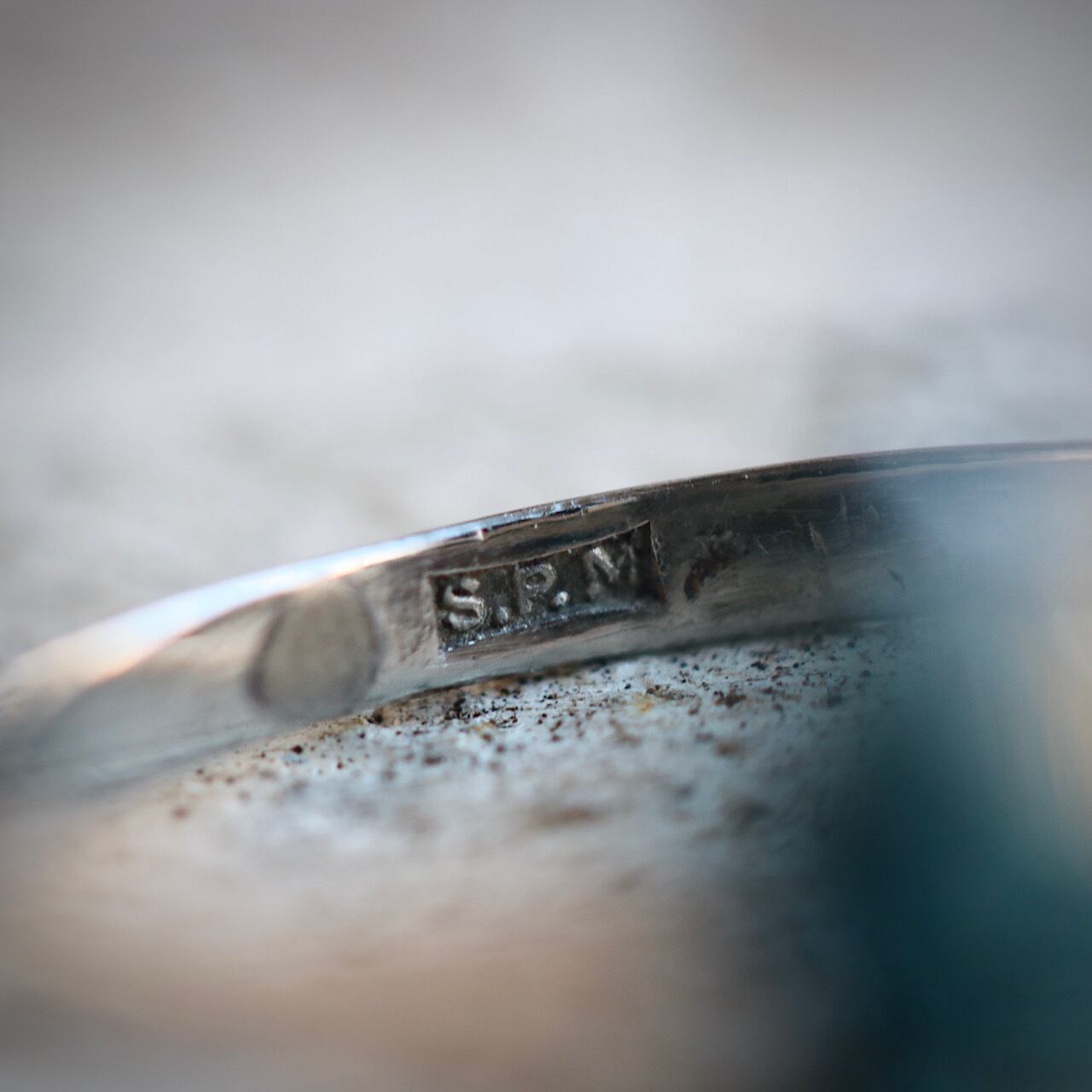 SPM サンプラチナ製 燻みブルー合成石のヴィンテージリング。