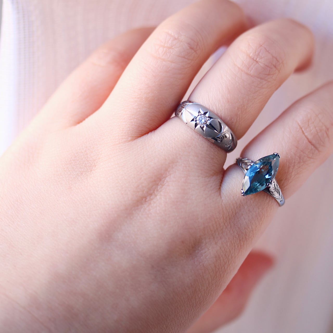 リング全体に艶消し加工がなされており、雪肌のようなマットな質感。