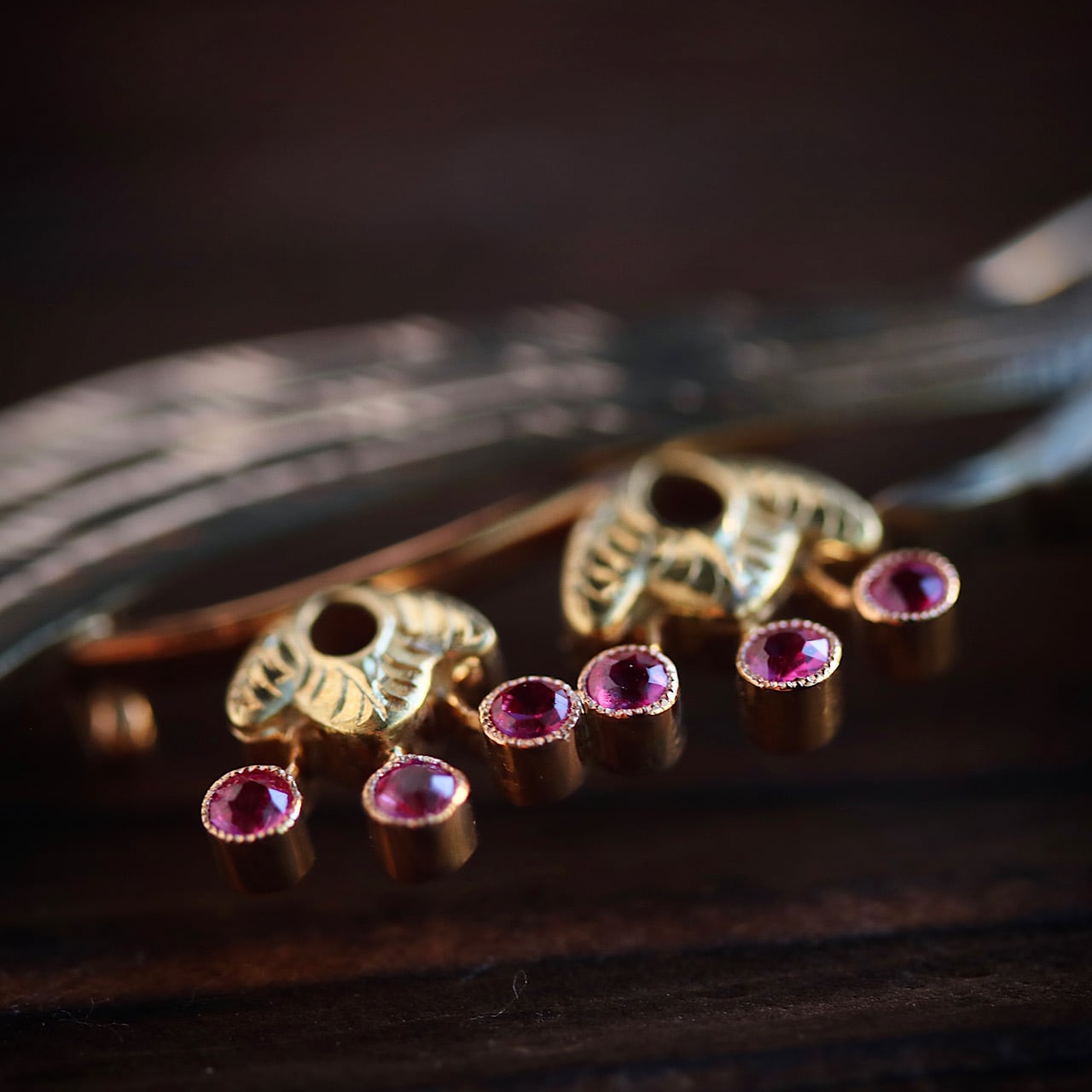 イエローゴールド・ピンクゴールド・ホワイトゴールドと金の配合を変えた三色で表現されており、地金の使い分けにこだわりが感じられる大変粋な作り。