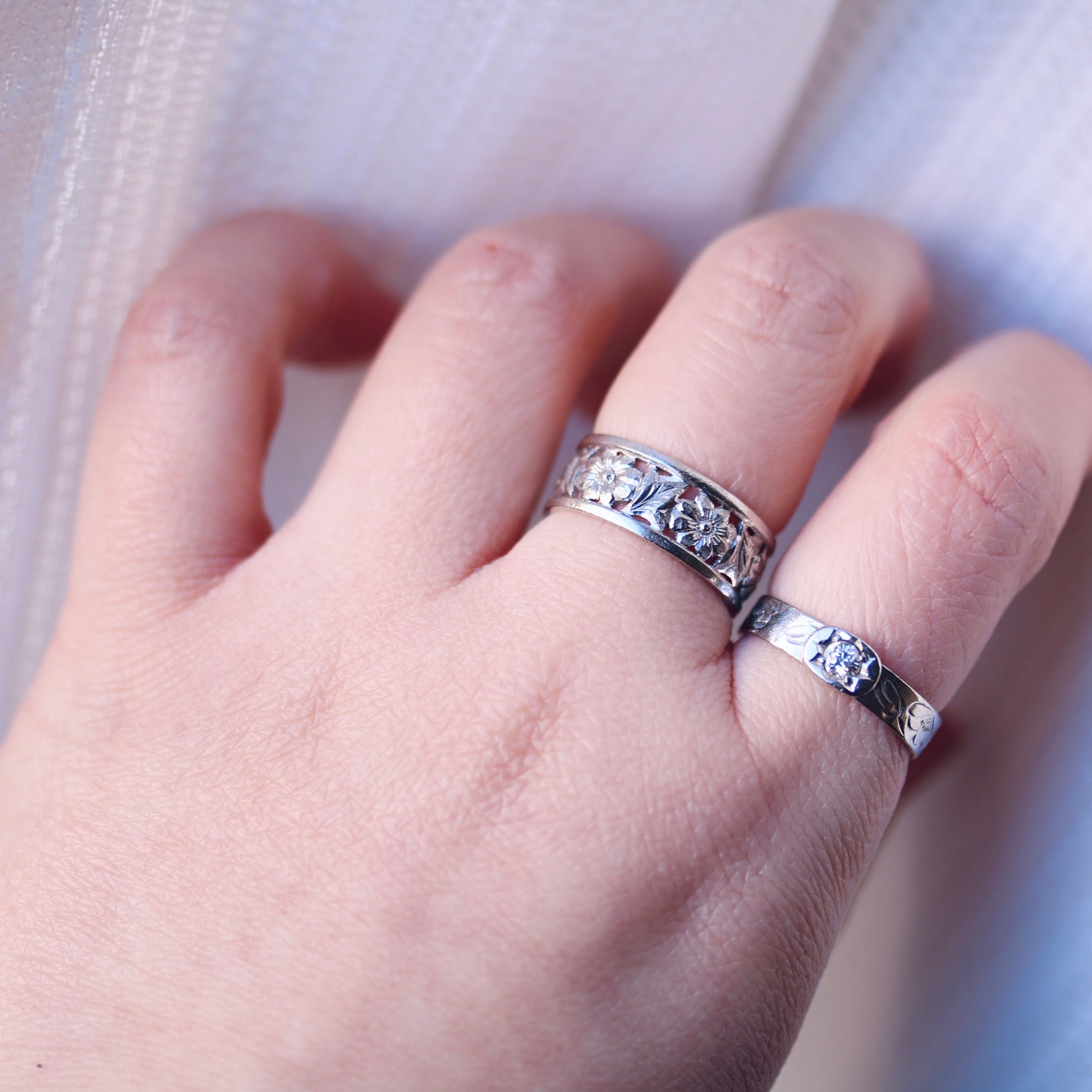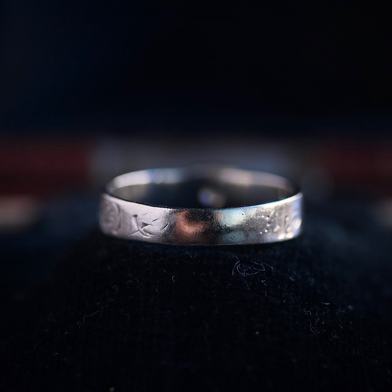 サイズ直しにより、後ろ側(着用時、指の腹部分)の彫りが消えてしまっています。