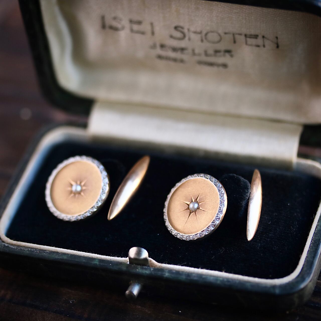 K18 服部時計店 芥子パールのアールデコカフスボタン。昭和7年〜10年頃。