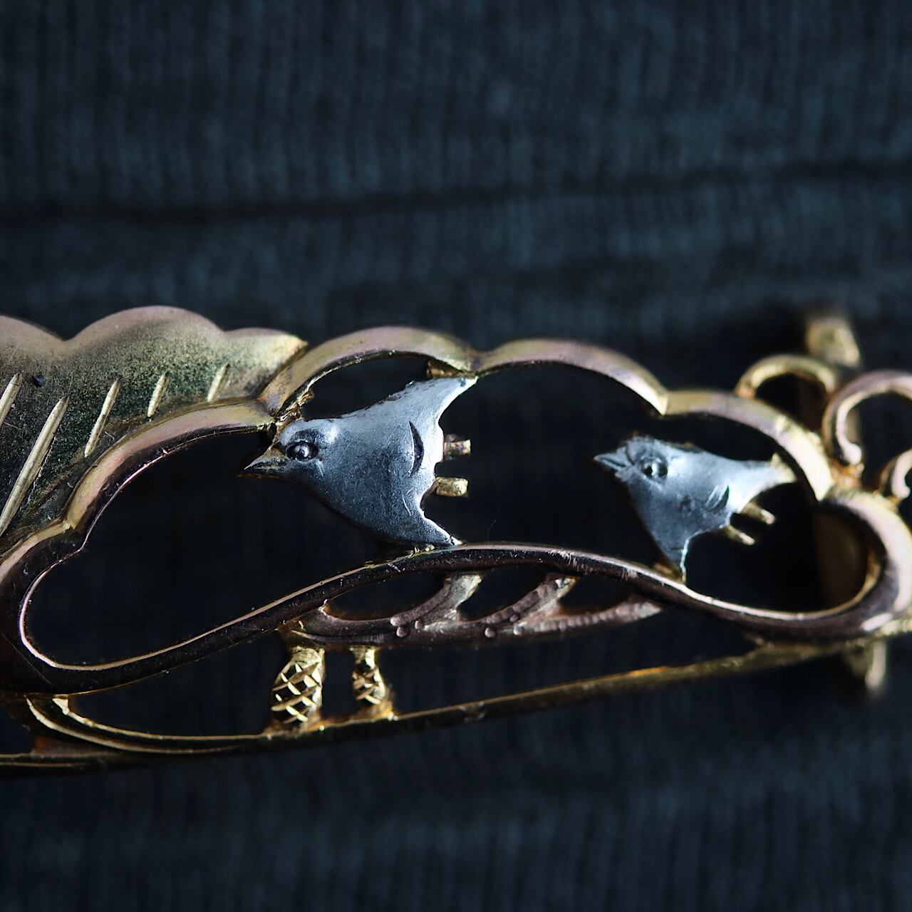 大正〜昭和初期頃の作品に多く見られる二色金のデザインで、このような地金の使い分けによりぐっとお洒落に見えます。