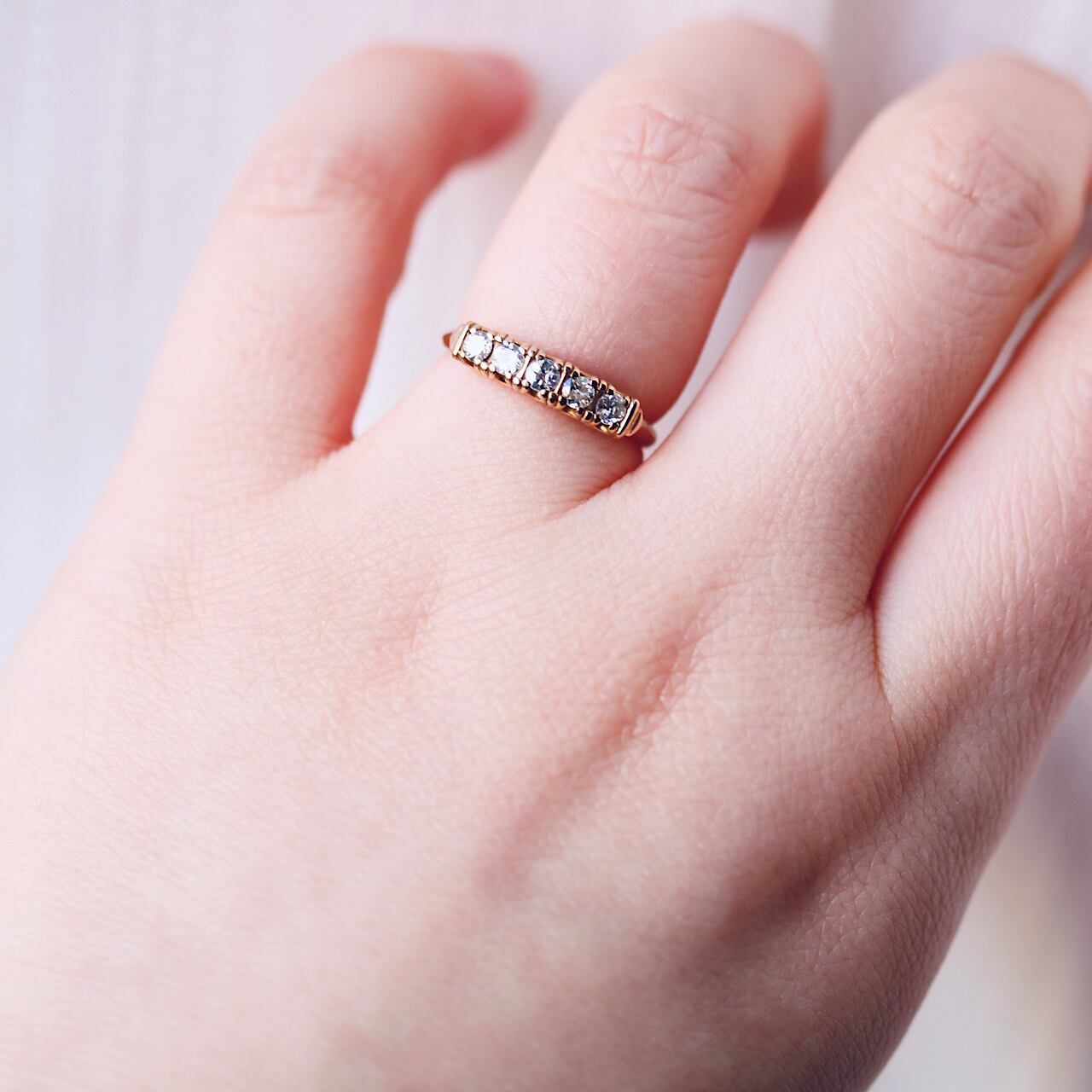アンティークダイヤモンドが5つ並んだ贅沢なヴィンテージリング。