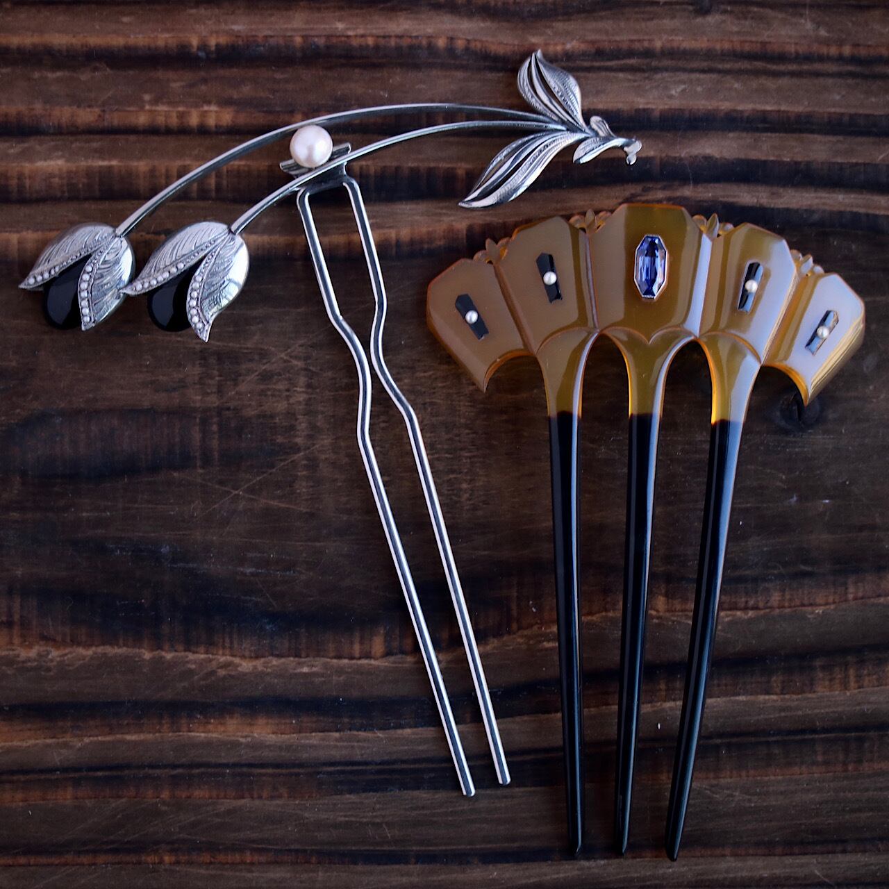 緩やかな曲線が美しいアール・ヌーヴォー調のアンティーク簪。