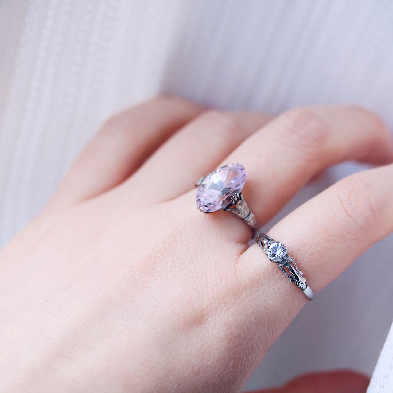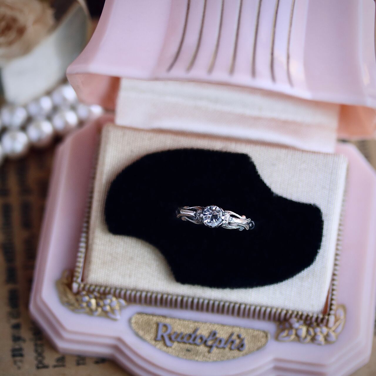 アンティークのダイヤモンドを模したシングルカットの硝子にアール・ヌーヴォー調のシャンクが美しいヴィンテージリングです。