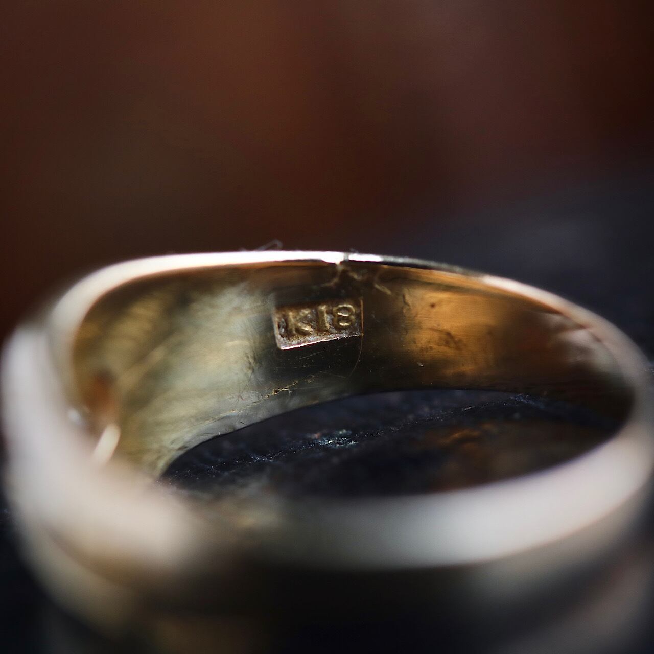 K18 ダイヤモンド 月形甲丸 アールデコデザインの地金ヴィンテージリング。