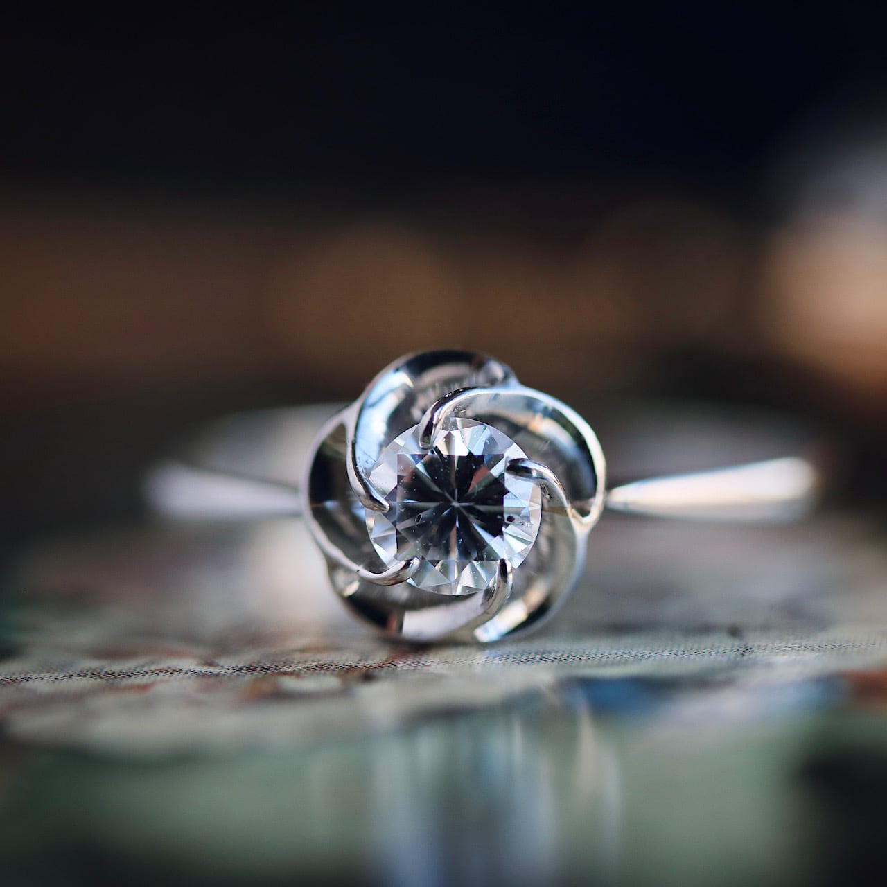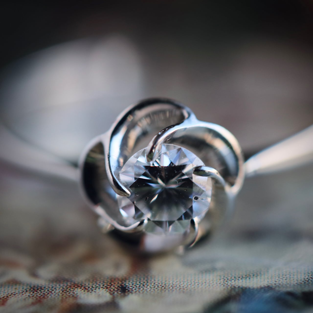 日本独自のデザインである捻り梅のシンプルなダイヤモンドリング。