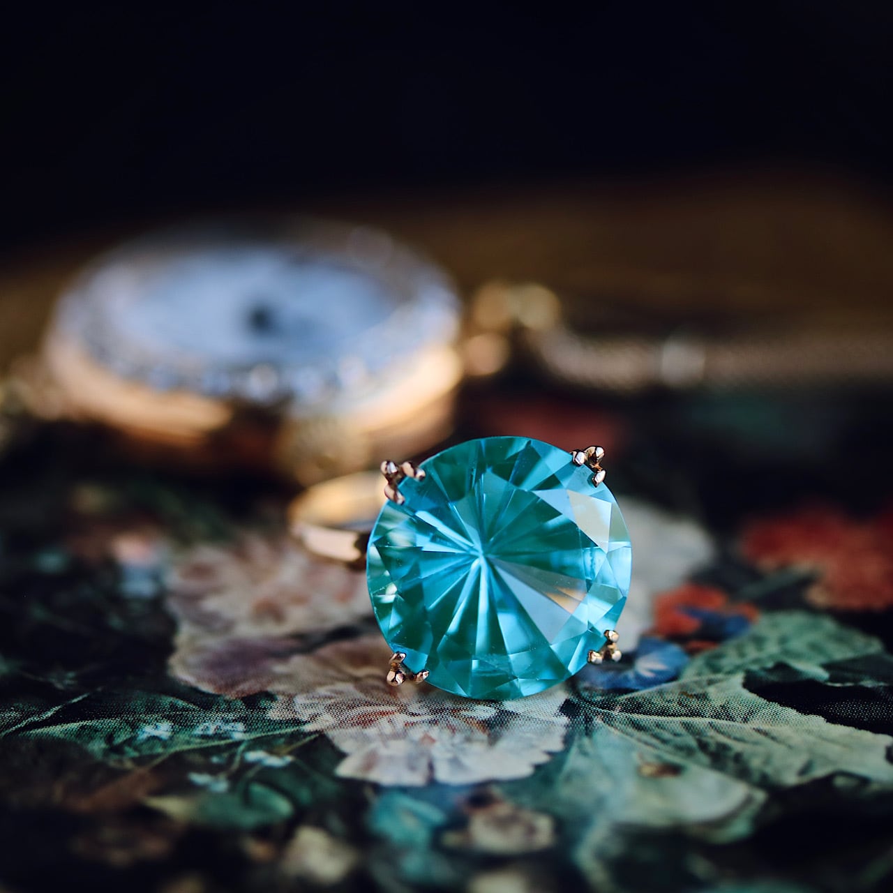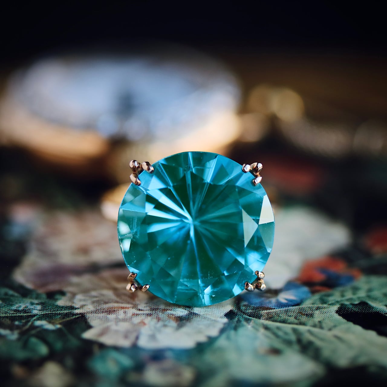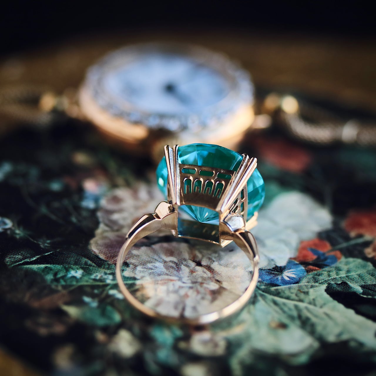 18金製の台は昭和中期に流行した王冠透かし(孔雀透かし)が施されています。