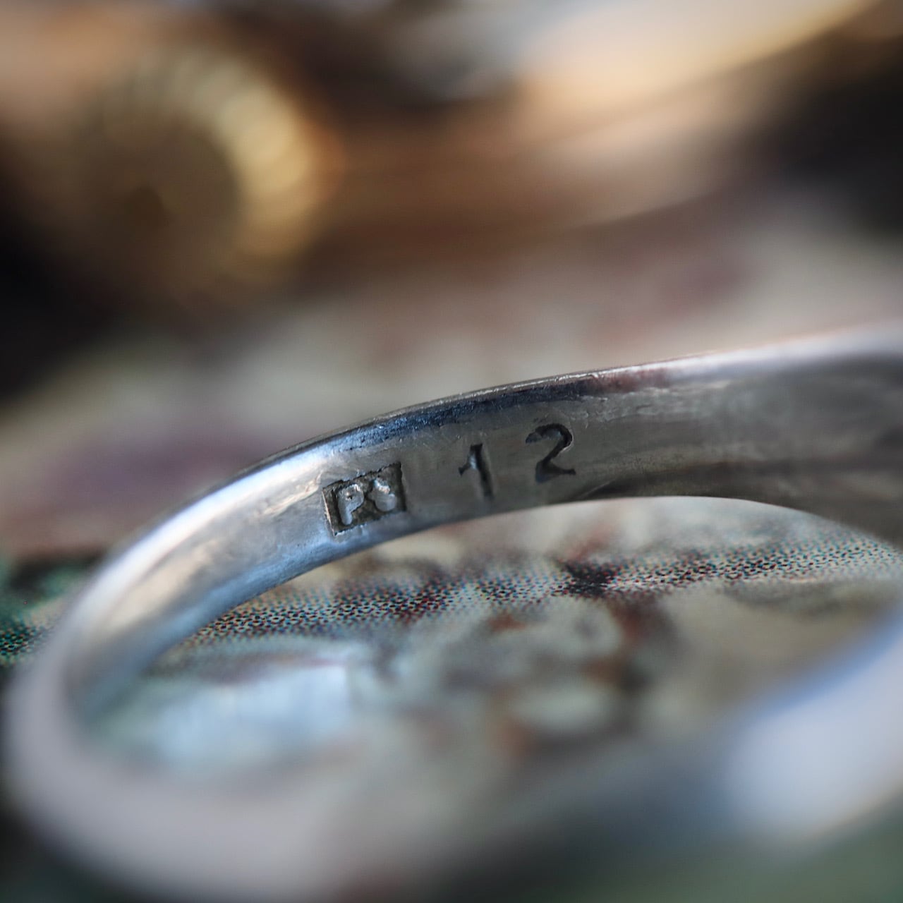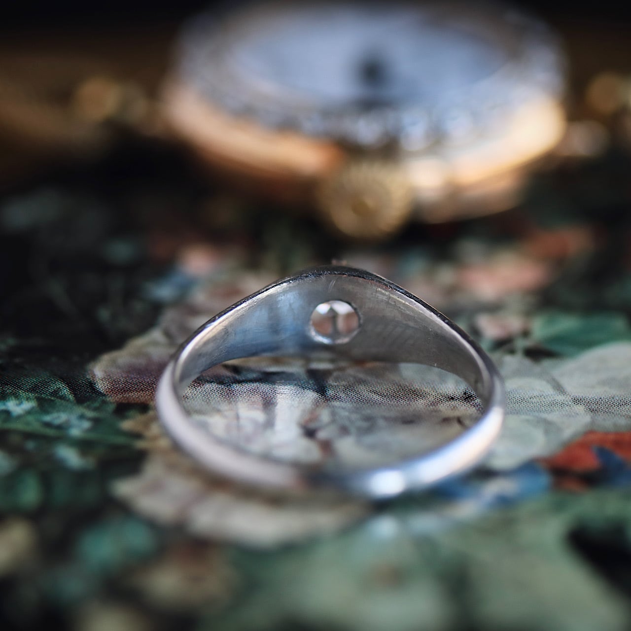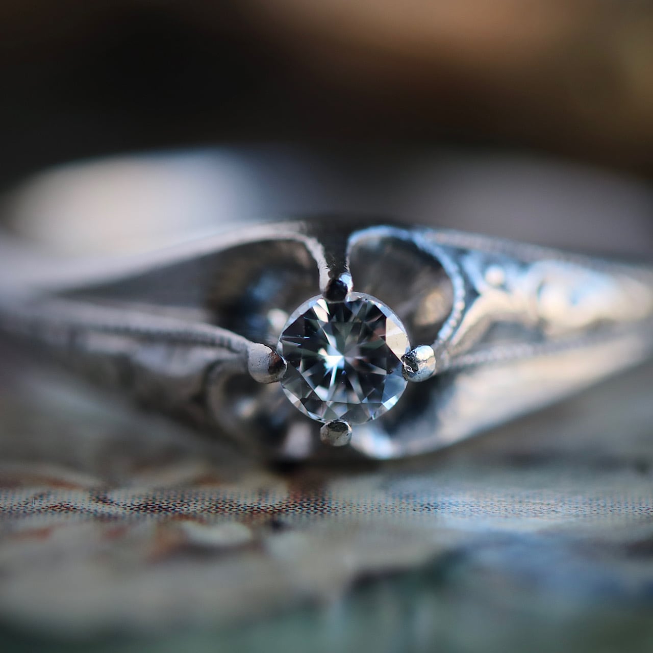 一見シンプルながらもアシンメトリーな美しいデザインに日本人の上品さが感じられるヴィンテージリングです。