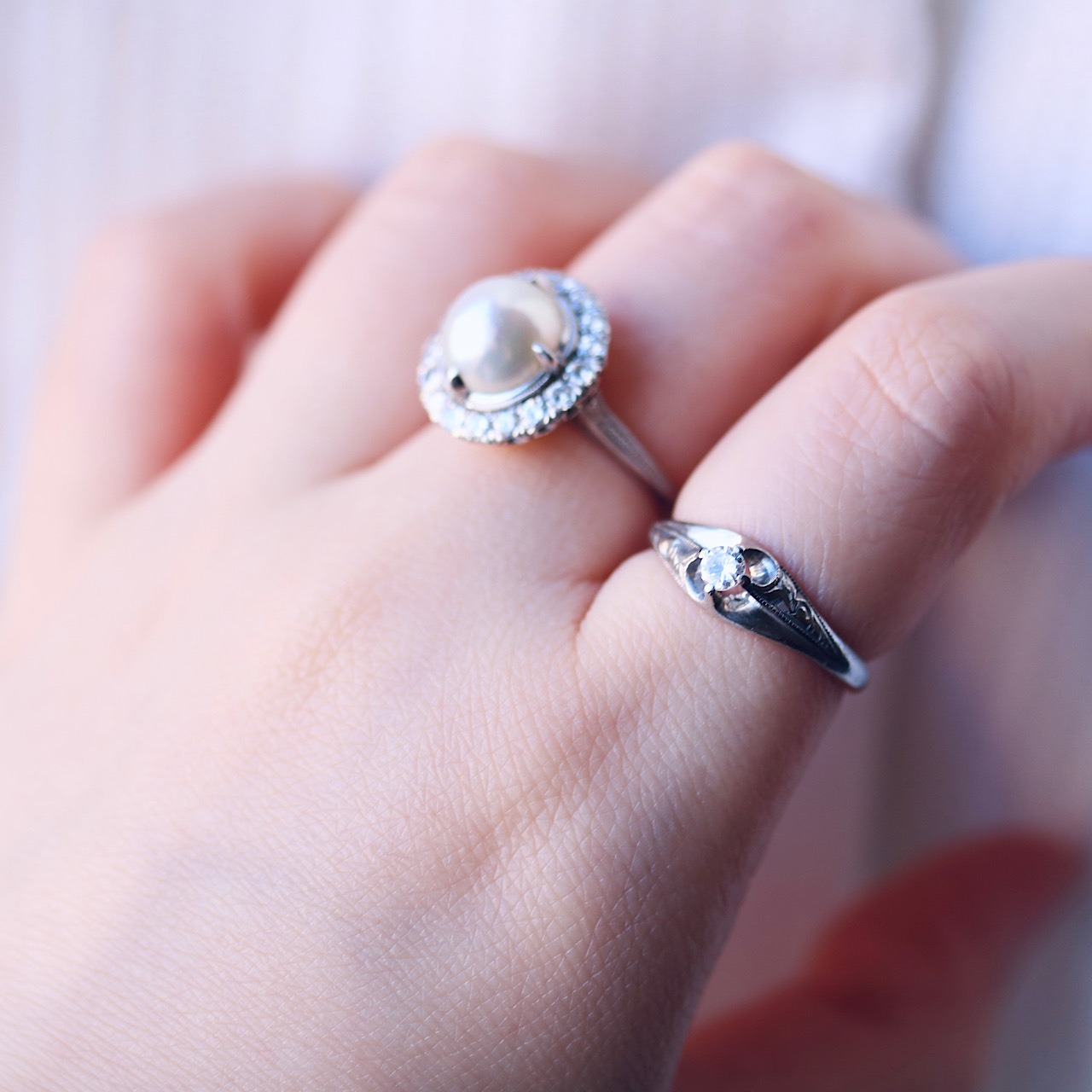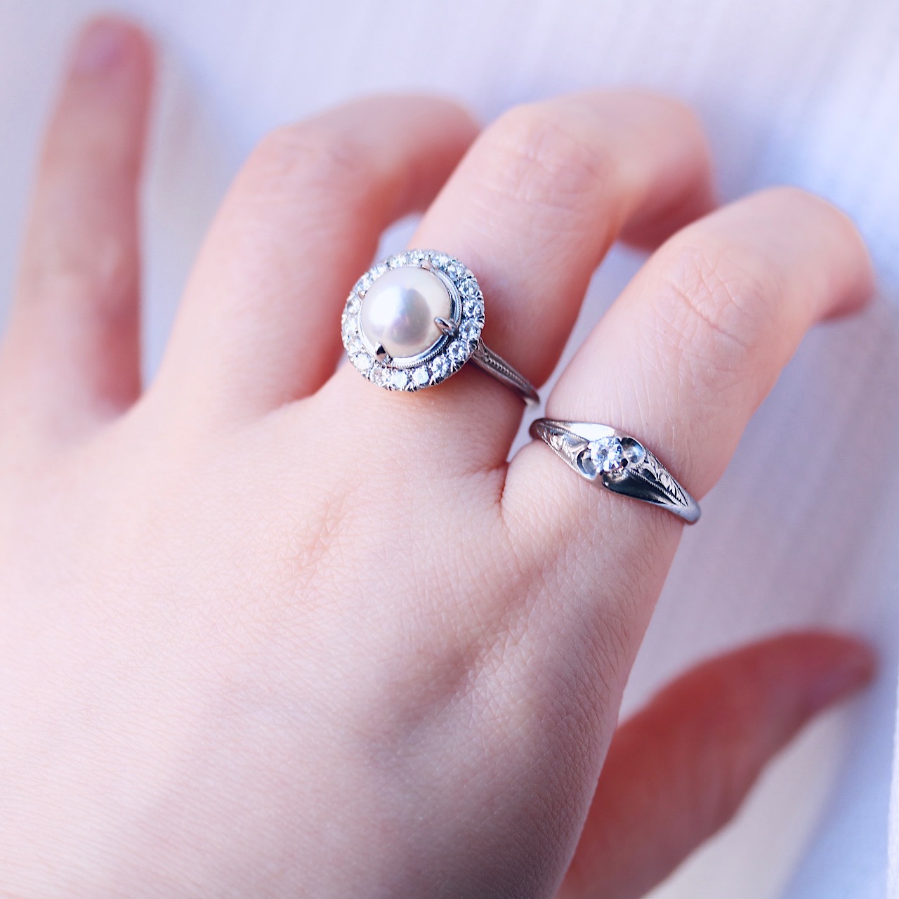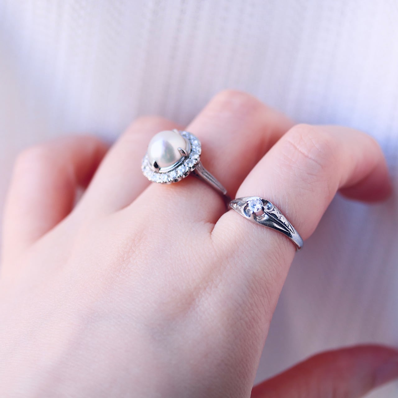 一見シンプルながらもアシンメトリーな美しいデザインに日本人の上品さが感じられるヴィンテージリングです。