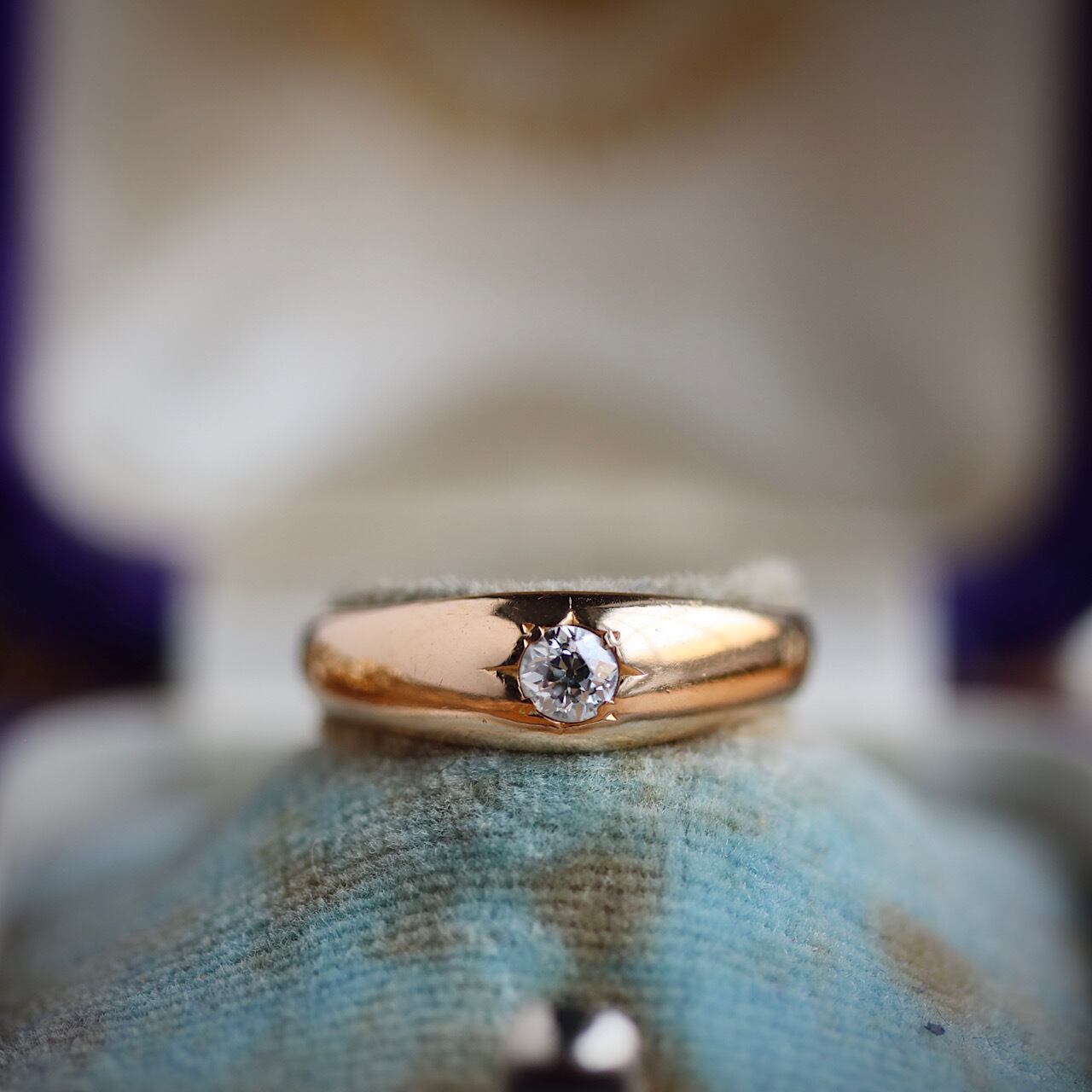 K18 オールドヨーロピアンカットダイヤモンドの月形甲丸リング。