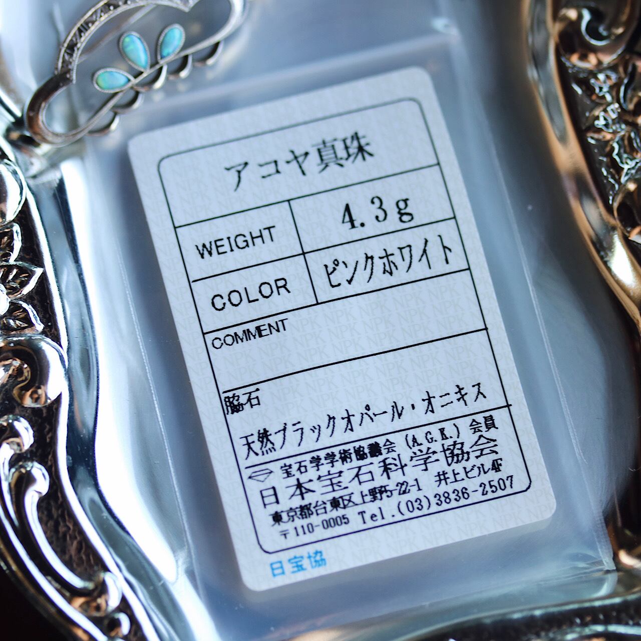 合金製 あこや真珠 ブラックオパール オニキス飾り