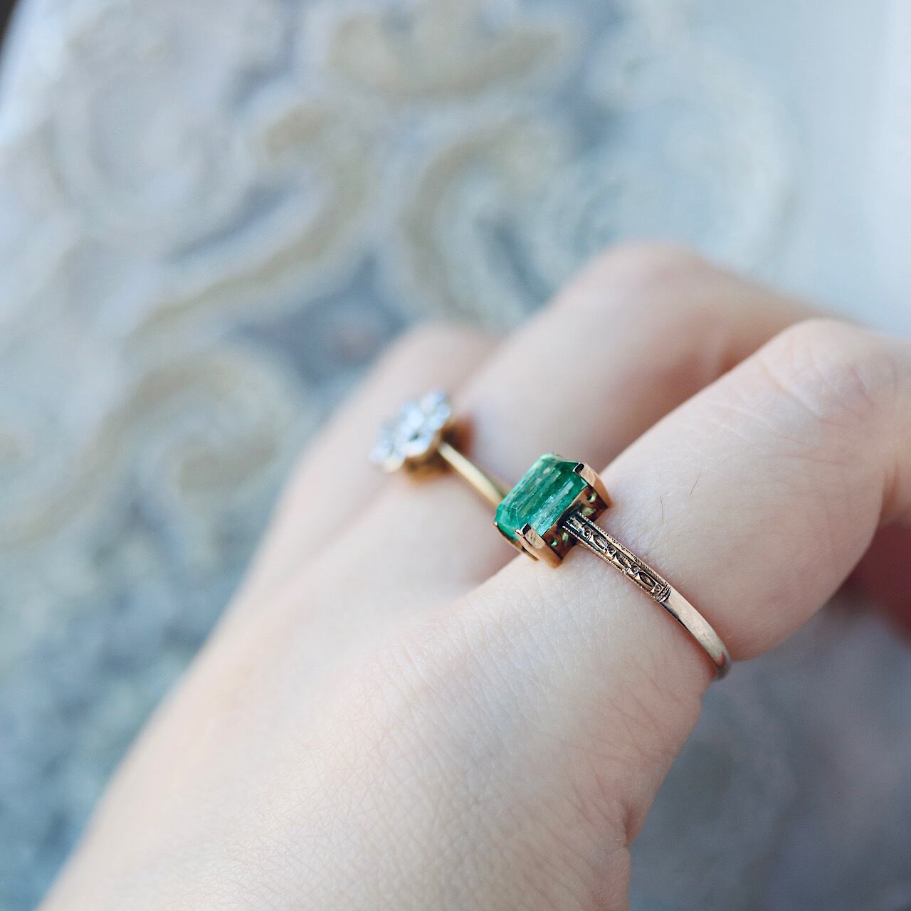 小粒なエメラルドですので合わせやすく、他のリングと重ね着けもお勧めです。