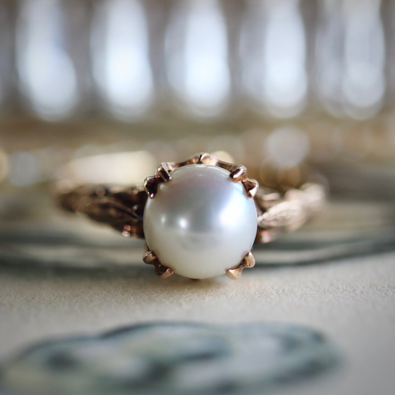 K18 一粒あこや真珠の和彫ヴィンテージリング。