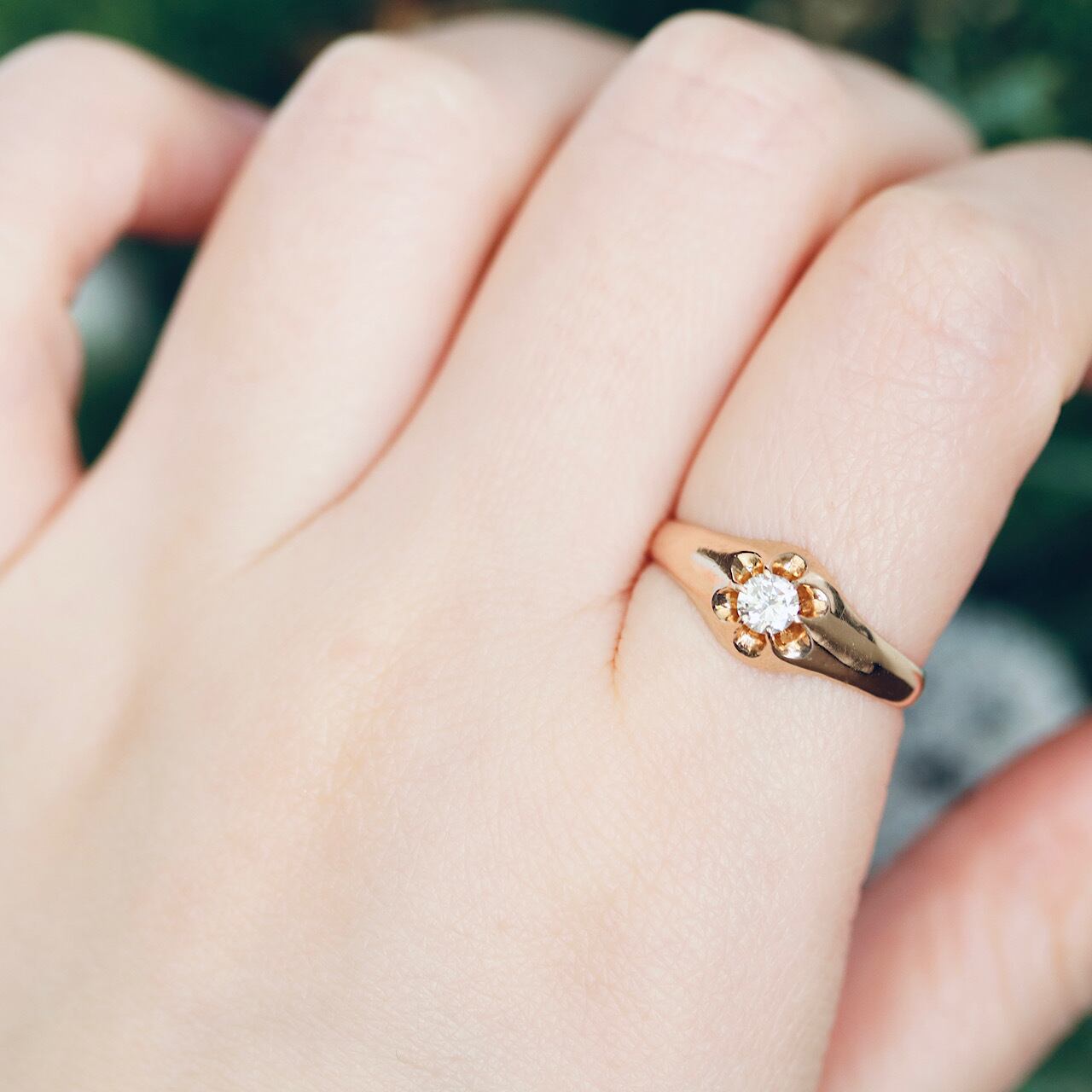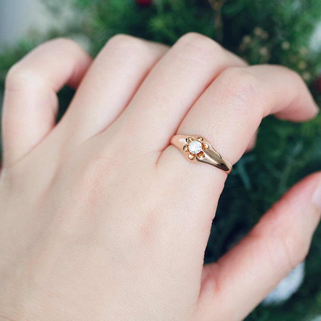 古くは明治時代から流行していたと思われる菊爪デザインのリング。