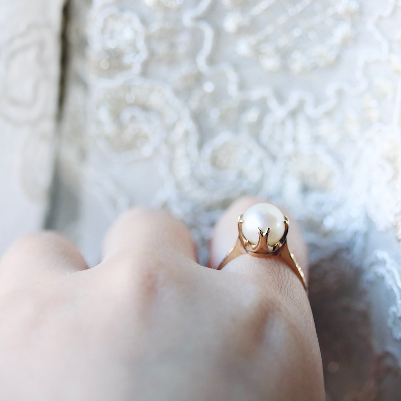 一粒のあこや真珠があしらわれたシンプルなヴィンテージリング。