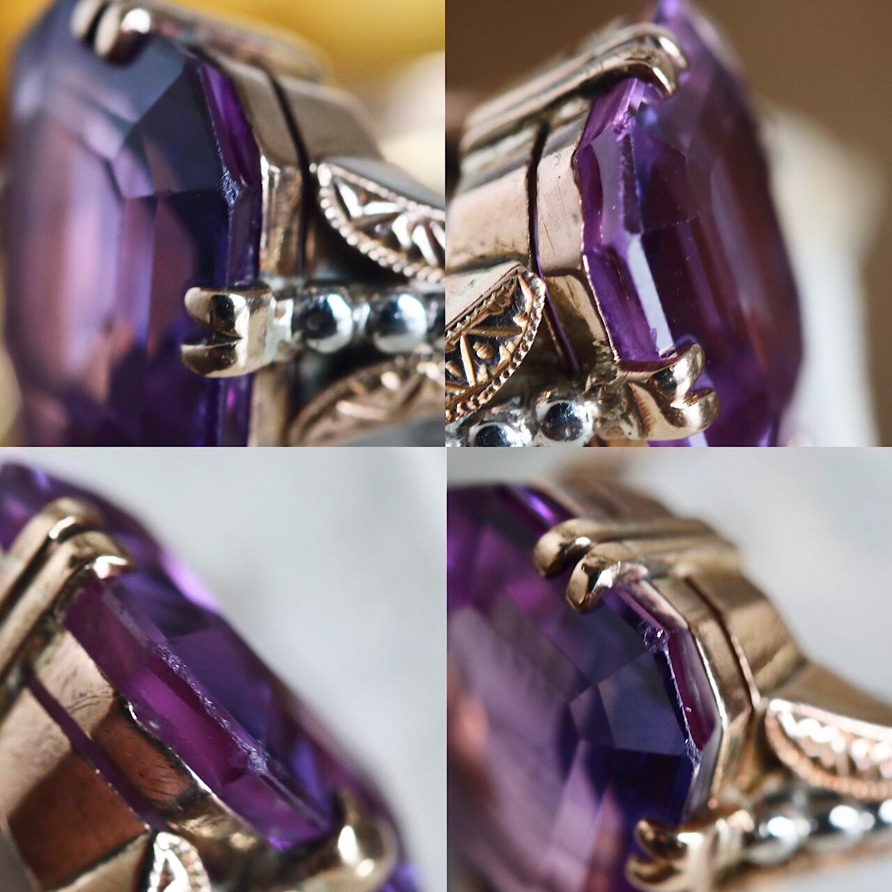 K18 合成パープルサファイア 二色金デザインのヴィンテージリング 。