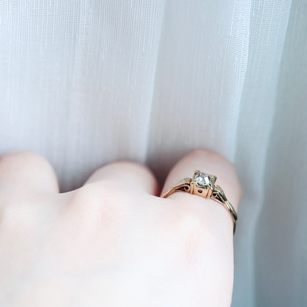 一粒のアンティークダイヤモンドが輝く、和製ソリテールリング。
